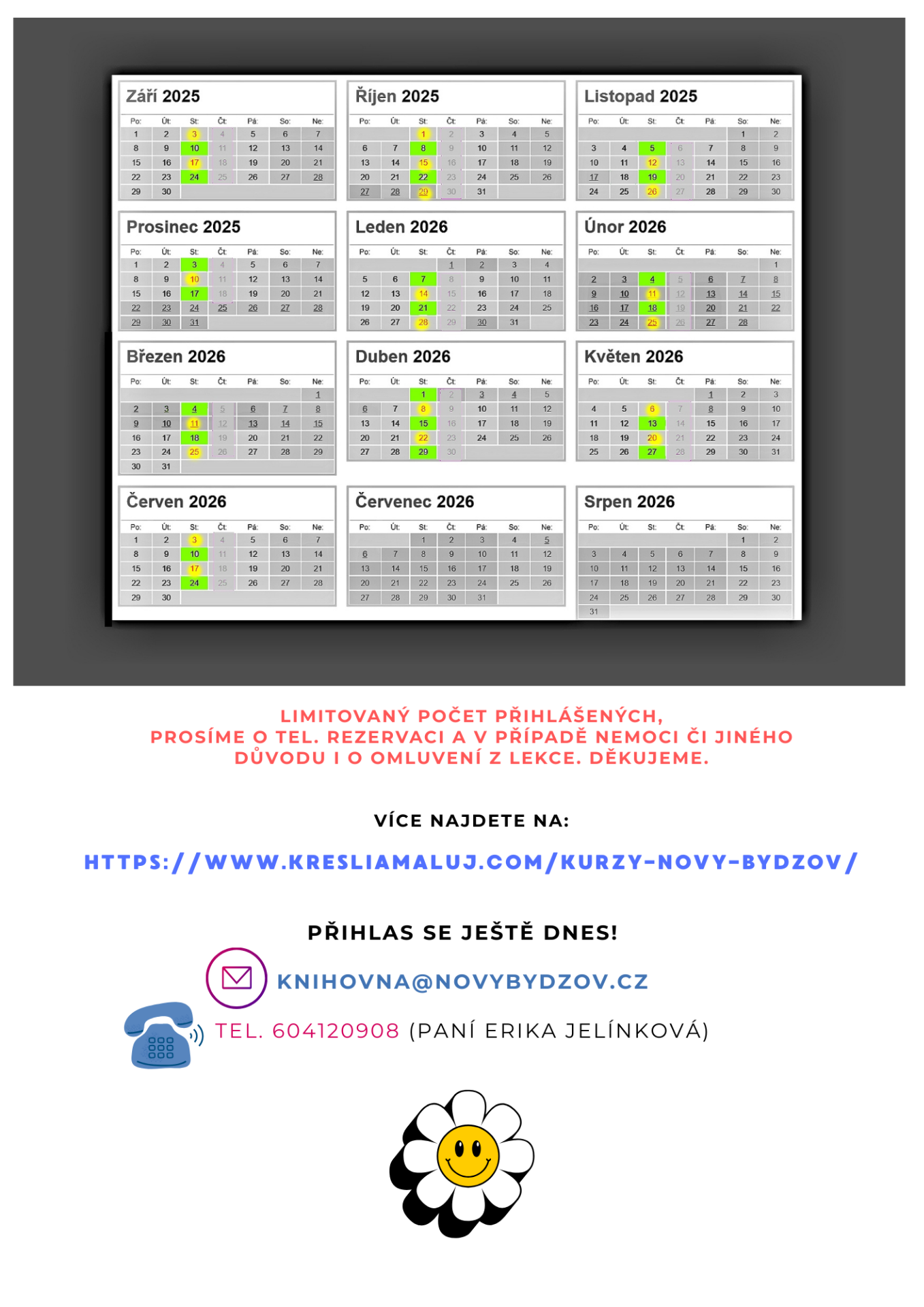 Kurzy budou probíhat ve spolupráci s knihovnou, rezervace budou tedy probíhat právě tam :-)