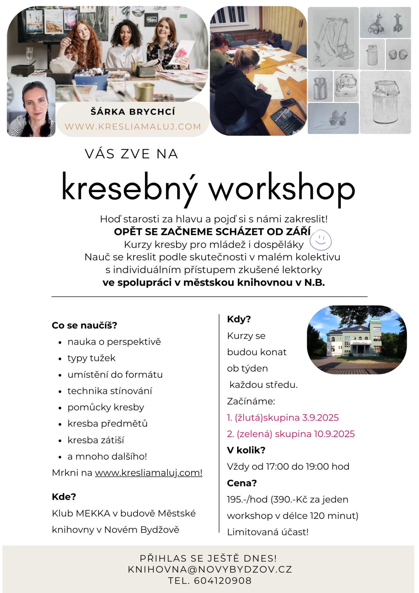 Opět otevírám hodiny kreslení v Novém Bydžově v prostorách klubu MEKKA v místní knihovně.